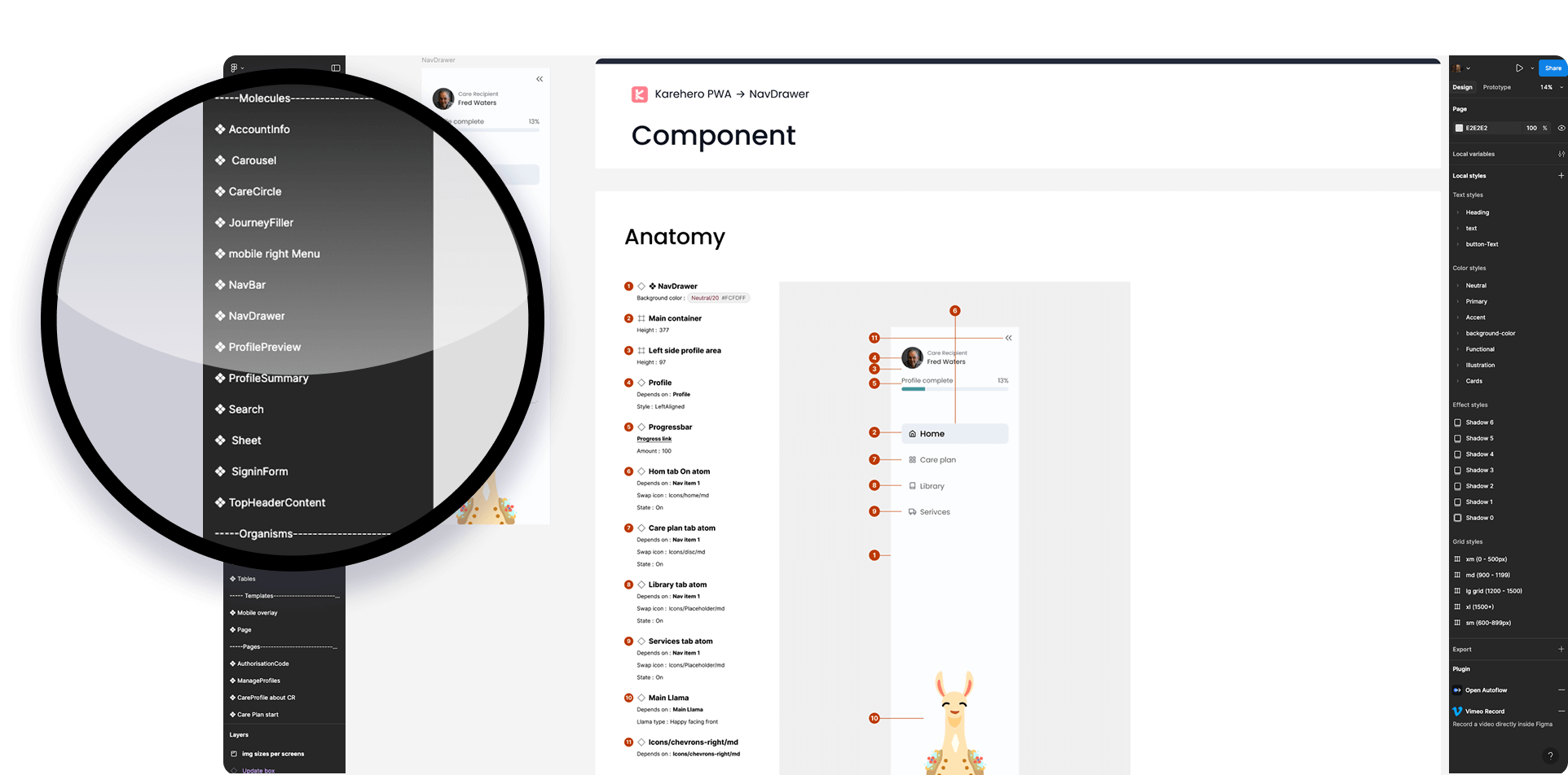 When planing the karehero progressive web app it was decided it would be a good idea to create a design system for it. It was going to be a large complex app, by creating all the foundations first then working from the design system we could ensure consistency through out and also future proof it so it would be easy to update globally and also easy for other designers and developers to use it.